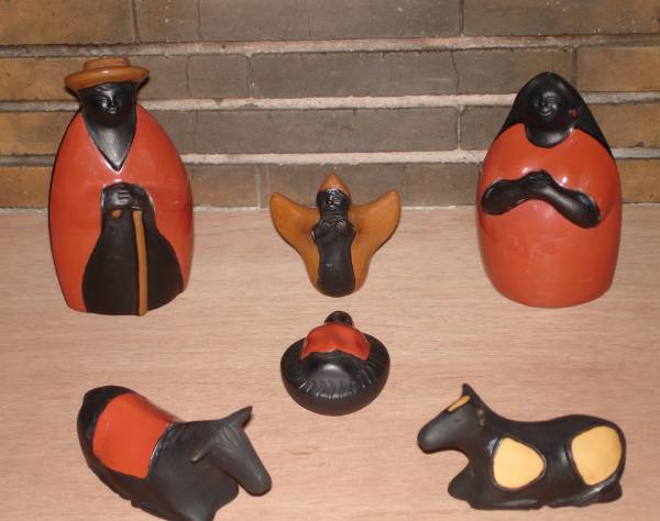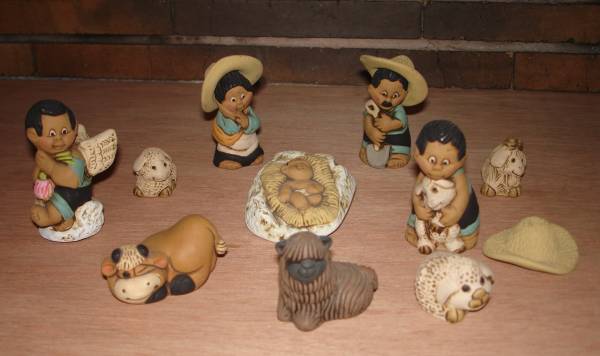 Ces crèches sont réalisées en céramique peinte à la main. Chaque pièce est souvent modelée individuellement, ce qui rend chaque crèche unique.
